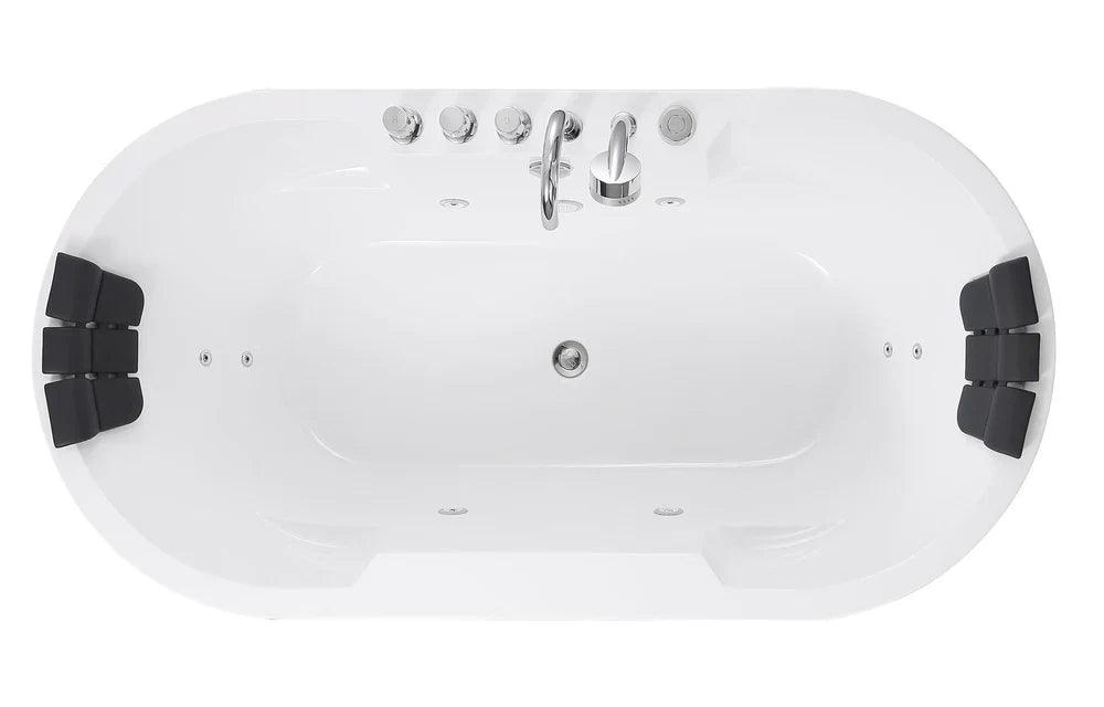 Luxurious 67" freestanding whirlpool bathtub with a center drain: